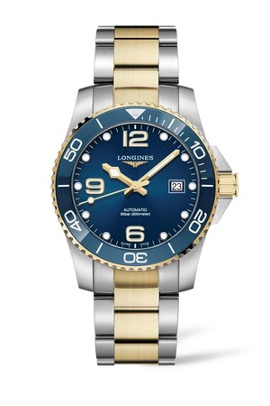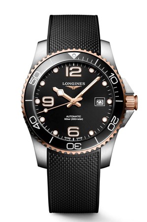 ▲浪琴表HydroConquest 深海征服者系列不锈钢黑色面盘玫瑰金PVD腕表(左),不锈钢蓝色面盘金色PVD腕表